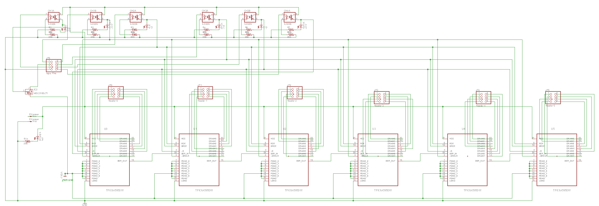 - Run through a loop that shifts a one to the proper pin location for the correct key. I.e., if the "a" character happened to be the 20th output pin, you would shift a "1" into the first shift register and then shift in 19 zeros. When you turn on the outputs to the shift registers, the pin that has the one fires its solenoid.