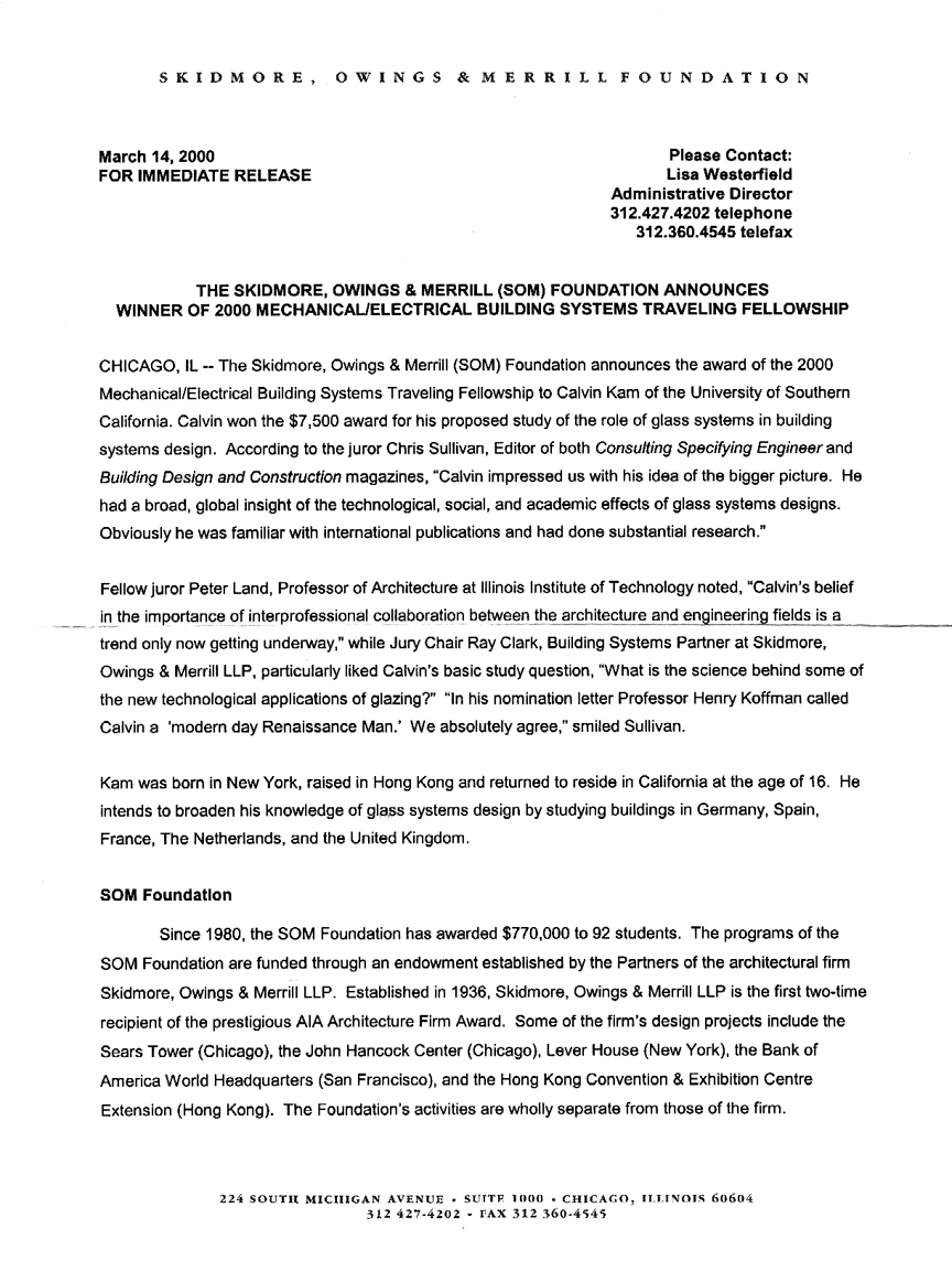 2000 SOM Foundation Traveling Fellowship