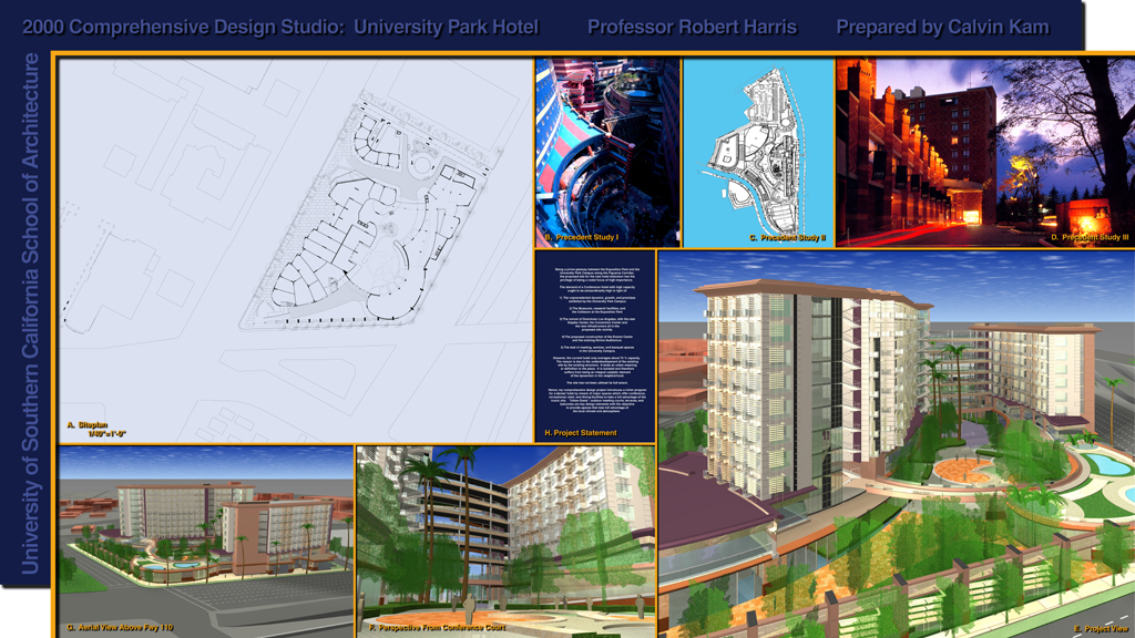 Architecture 502L, Spring 2000 Page 1 of 7 Images of Presentation Boards--Hotel Extension Next Page Return to the Information Center of Calvin Kam
