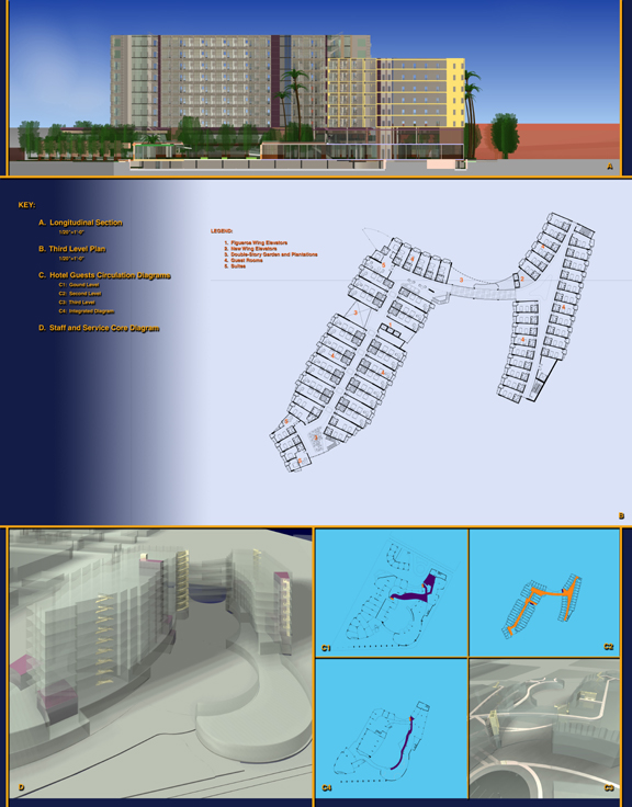 Architecture 502L, Spring 2000 Page 5 of 7 Images of Presentation Boards--Hotel Extension Next Page Return to the Information Center of Calvin Kam
