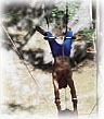 and backwards on a trapeze far above the ground, arcs upward and grabs the