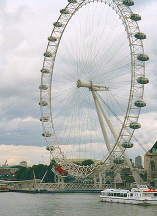 The London Eye, built for the celebration of the new millennium, is a huge, Ferris-wheel-type observation ride. Taking 30 minutes to complete a revolution, your "flight" consists of one trip to a height of 450 feet and back down again.