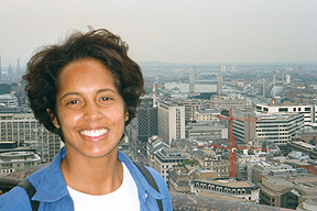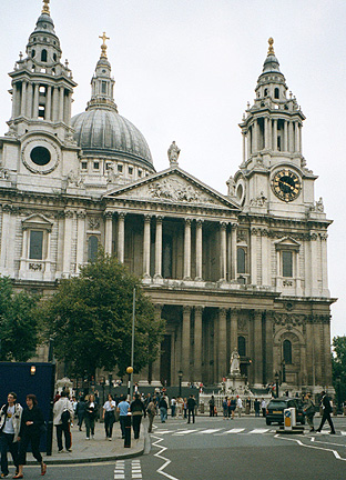 If you look carefully, you can see the Tower Bridge over Angela's shoulder and the terror in my eyes. We're 280 feet above terra firma at this point. I'm not letting go of that railing. The official St. Paul's Cathedral web site is very well done, with interactive maps and 360° panoramas. |