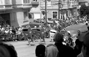 I need to find someone who lives in one of these apartments some year. We parked ourselves on Taylor, across the street from these lucky folks, next to a big tree, for the whole of the men's race. |