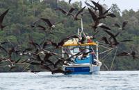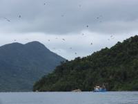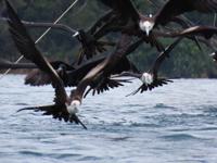 birds to see. The frigate bird feeding frenzy around a fishing