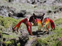 Lots of red crabs to see along the banks. Denise and Guilherme