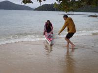 return to Paraty), using the support boat to follow along. Now