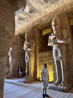 And then there is Abu Simbel itself. Ramses II was fond of building monuments (see Luxor, Memphis) and populating them with statues of himself. Abu Simbel featured 4 massive statues of Ramses, plus a temple dedicated to Nefertari. the interior is elaborately decorated with statuary and wall art (extolling Ramses' exploits, of course). Part of the idea was to demonstrate dominance over Nubia. It was also oriented so that twice per year sunlight would make it to the Holy of Holies sanctuary inside and illuminate the statues of the gods and pharaoh. Evidently we missed that by about a month.