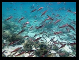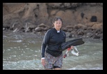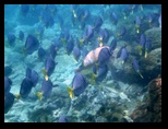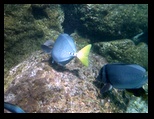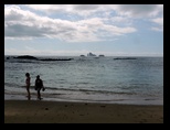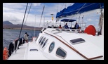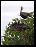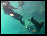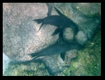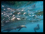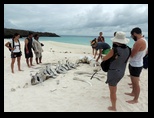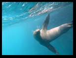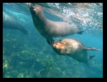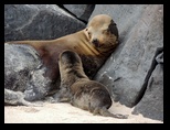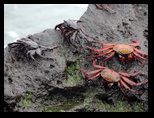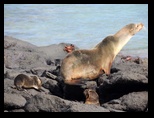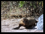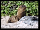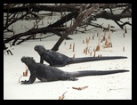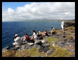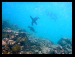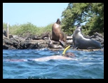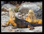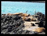 one or two snorkel expeditions. On land, we got to see animals and birds we wouldn't otherwise see - except sea lions. Iguanas (land and marine), lizards, tortoises, crabs; boobies, frigate birds, Darwin finches, warblers, Mockingbirds, pelicans, tropic birds, etc. in the air. In the water, we got to swim with sea lions and see sharks, turtles and myriad tropical fish. Swimming with the sea lions was a delight - they seemed entirely bent on play. Access is strictly controlled by the Parks Service, with Santa Cruz the only inhabited island. The Service tells the tour operators 2 years ahead where their outings will be and limits the number of people on any island at a given time. Mostly we were the only ones on the islands we visited. And even there, we were restricted to specific trails. A morality tale is to have backup technology. The battery on my main camera died; fortunately I had brought a spare. My underwater camera shorted out on the last afternoon of the trip. |
