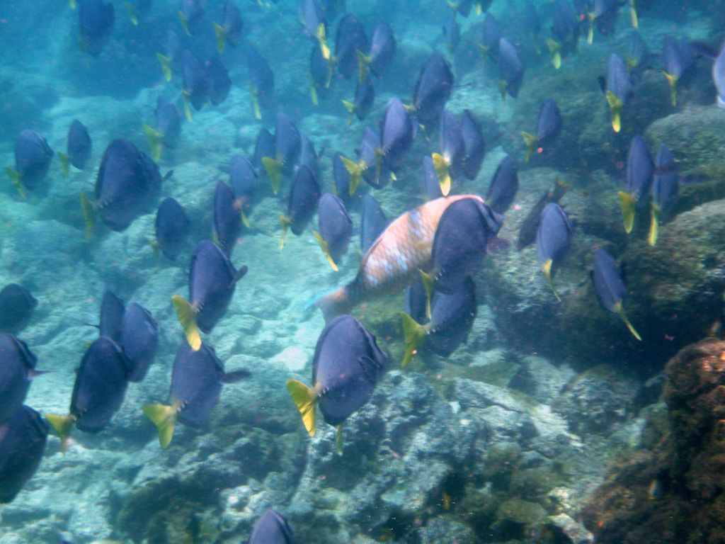 Galapagos2015 -- Espanola: Yellow-tailed surgeon fish & Parrot fish