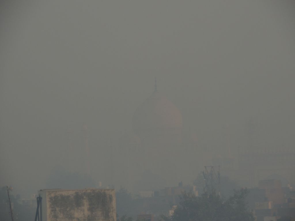 India2016 -- Early morning "view" of the Taj Mahal from our Taj Gateway Hotel room