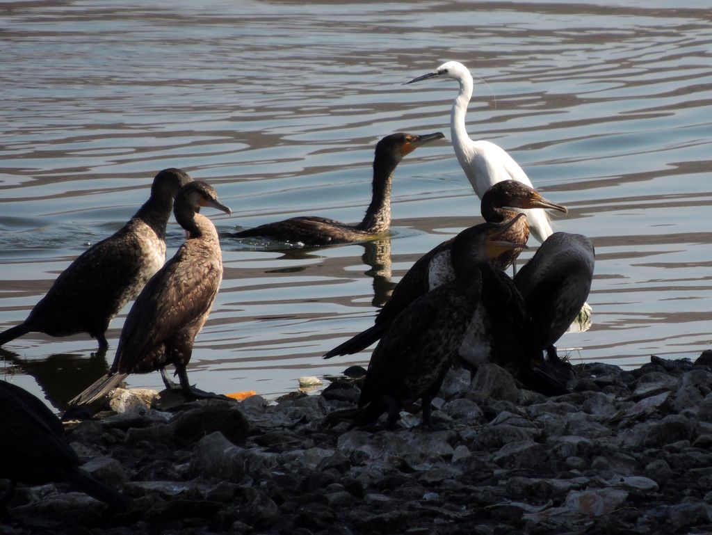 India2016 -- Cormorants and Egret - Man Sagar Lake, Jaipur