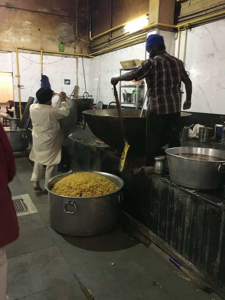 India2016 -- Shoveling rice (literally) in the Sikh temple kitchen, Gurudwara Bangla Sahib, New Delhi