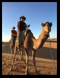 Fes and Marrakech. We got to experience 3 mountain ranges (Rif, Middle and High Atlas) and sand dune desert. As well as ancient cities, like Fes dating back to the 8th century. We had a driver, Khalid, throughout, and though we had not planned on a guide for the duration, the travel company decided to supply one. In the end, we had 3 guides. We stayed in Riads/Dars everywhere, except Casablanca. These are small boutique hotels with courtyard (Dar) plus garden (Riad). We got upgraded to the top rated hotel in Casablanca. We started with a quick exploration of Rabat: the main monument Mohamed V Mausoleum/Hassan Tower site; and then exploring the Medina (walled old town). Then off to Chefchaoeun in the northeast and the Rif mountains. We took a brief look at Tangier, with a sighting of Spain, on the way. In Chefchaouen, we enjoyed the Blue City, and did a hike into the Rif mountains to the Pont de Dieu natural bridge. Then to Fes, via the old Roman ruins of Volubilis. We took in a modern olive press facility on the way. Olives and olive oil are big business. I've never seen so many olive trees! The old markets in Fes are a labyrinth, and our guide gave us a great entry into them - he seemed to know everyone. We went into a couple of homes in the Fes suburbs, and Deb was taught how to make jellaba buttons (apparently the only tourist in their experience to succeed). We got to sit in on a group of retirees jamming to Moroccan music up in the Middle Atlas mountains. Merzouga was the location for the sand dune desert camp. We took a 90' camel ride to the camp, where we were treated royally. Our tent had a king size bed with 4 duvets and hot water bottle. We took in sunset and sunrise on the dunes, and got to experience the dark skies before dawn with horizon-to-horizon stars. On to Marrakech, with its Medina, monuments and a wonderful hike into the High Atlas mountains, from Imlil. Half way up to our 7400' destination, Deb availed herself of a passing donkey and hitched a ride the rest of the way up. The mountain scenery was gorgeous, and the previous day's morning rainfall (the only rain on our trip) had dusted the peaks with snow for us. Finally, we visited Casablanca. It's much less of a tourist town, and seems to be the most French. In fact, our final dinner in Morocco was a superb French meal. One of the best I can remember. It was appropriate to spend a good bit of time in Morocco - it is very diverse, with the different regions being different in geography, food, people. The country is beautiful and the food great. And we were always welcomed wherever we went. With people out of the blue on the streets wishing us welcome. Morocco is now a real place to us. |