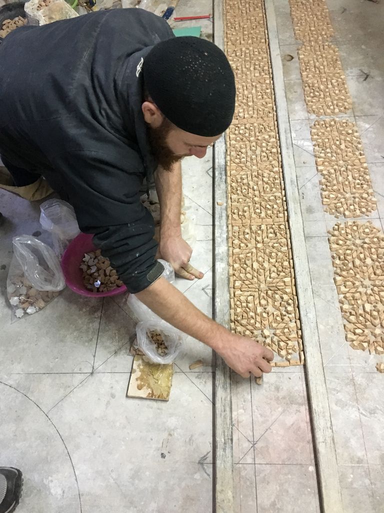 Morocco-2017 -- Fes: making mosaics, upside down, at pottery Co-Op