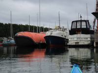 We hooked up with Oslo Kayaking to paddle along a good bit of Bygdoy island's shoreline (I had not realized at the time that had we paddled a bit further we would have got to the Fram museum). When we arrived, there was a surf-ski training session underway, with paddlers doing 500m sprints. We figured they were just killing time until cross country ski season The main waterfowl we encountered were eider ducks, famous for their down. We were also able to point out to our guide that Canada geese are different from barnacled geese, and that we were sorry they had to have Canada geese.