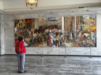 After the tour and hot dogs at a street stand, we retraced our steps back to City Hall, which is pretty plain on the outside, bordering unattractive. Our guide had said the interior was a whole different story - and it was. The grand hall had remarkable multi-storey murals and marble floor.