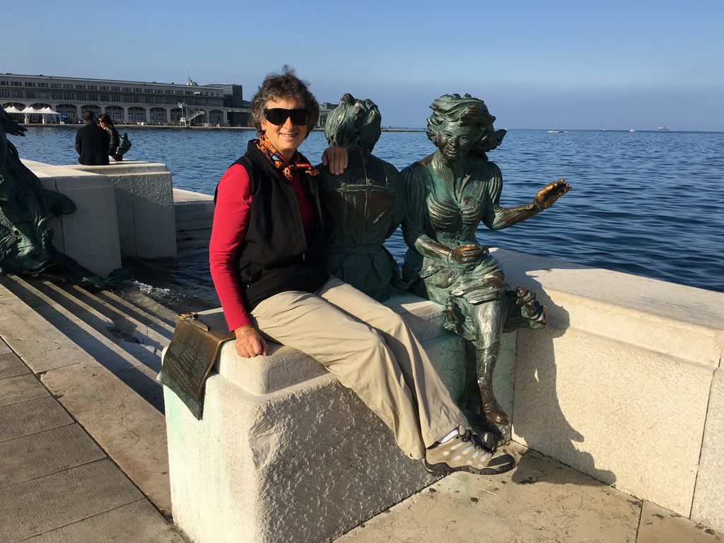 Trieste-Venice-2016 -- Statue of two women sewing... note the scissors to my right