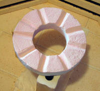 I'm testing using fiber board to create my own moulds. I soaked a piece of fiber board in rigidizer and (eventually) fired it to 1300F. It came out rigid enough to easily sand and carve. I carved out slots with a chisel. Then kiln wash.