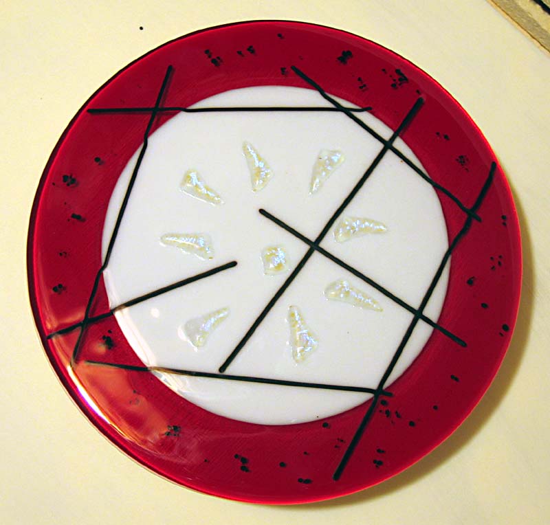 Standard firing to 1500F. Note that clear dichroic on white is not too exciting. Standard slump.