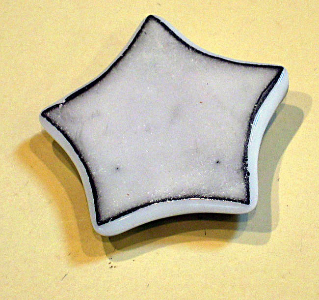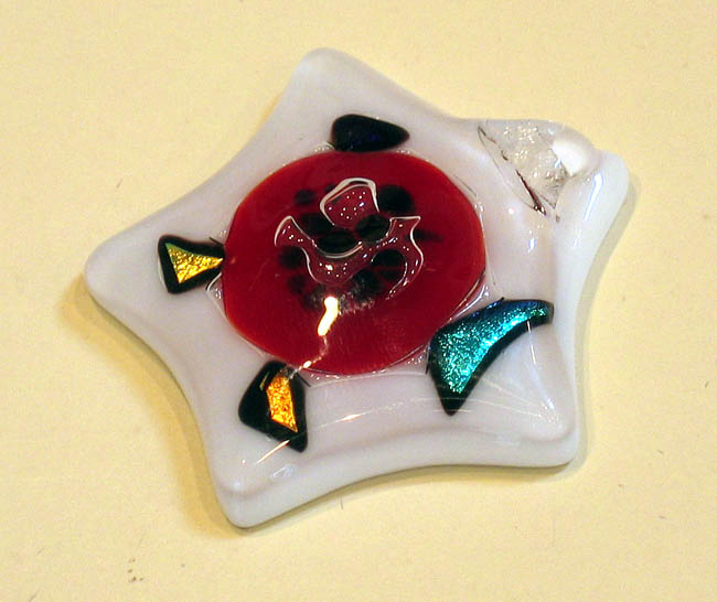 One of the bits of dichro wandered in the star as the cap glass melted over it. Maybe should have glued it down.