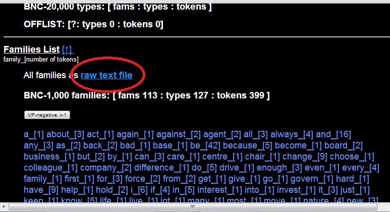 F. Load the transcript into the Lextutor vocabulary profiler, http://www.lextutor.ca/vp/bnc/, and click "submit". Go over the vocabulary profile and decide which words might be useful to learn. Note that the most useful information will be in the "Families List" at the end--you can see this list easily by clicking on the "raw text file" link.