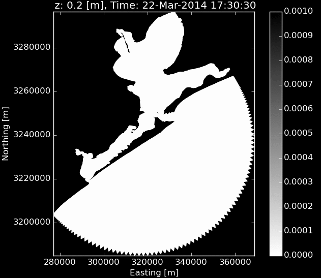 mudflats during low tide, and show how a substantial portion of the domain was still inundated