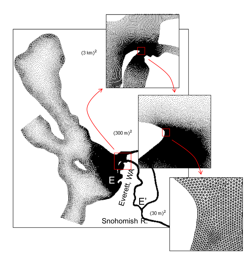 River Estuary near Everett, WA, a macrotidal salt wedge estuary. We employed the SUNTANS model with very