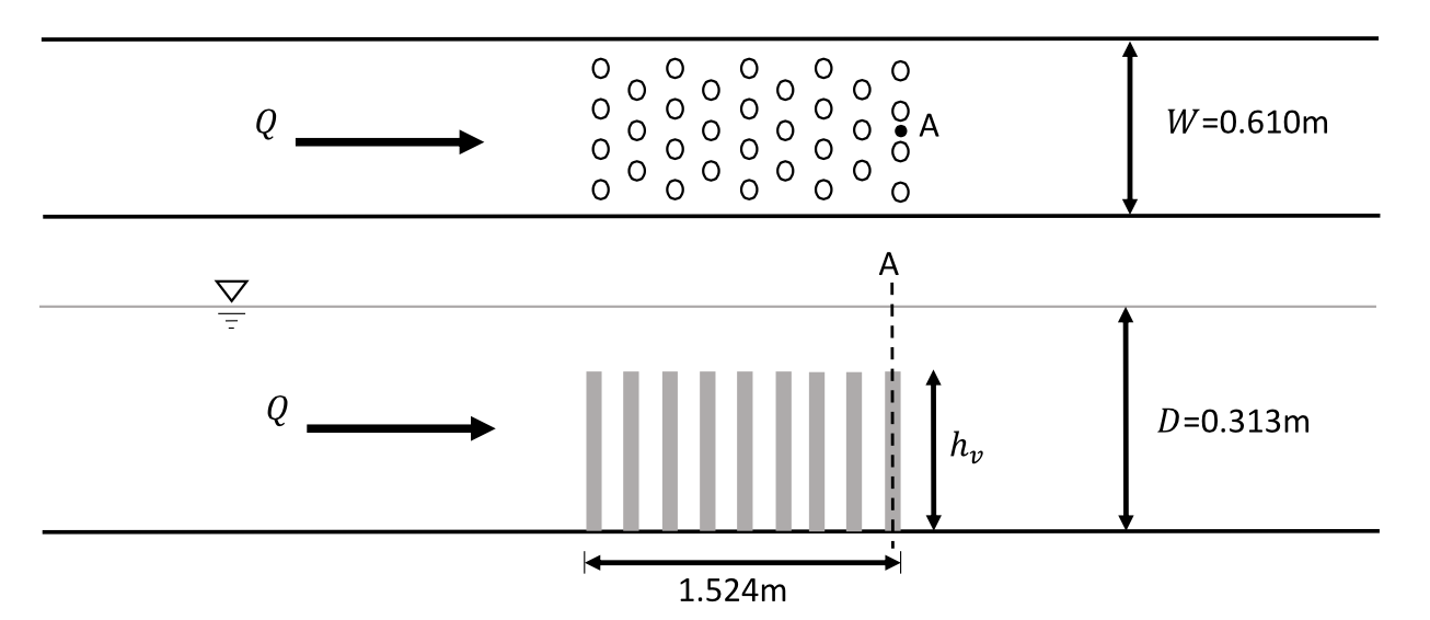 Figure 12: Top and side views of the laboratory experiment used to validate the vegetation drag