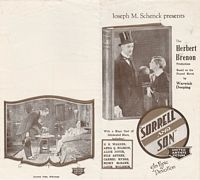 Sorrell and Son (1927) Feature Productions. Distributor: United Artists. Presenter: Joseph M. Schenck. Director-Scenario: Herbert Brenon. Adaptation: Elizabeth Meehan. Photography: James Wong Howe. Set Design: Julian Boone Fleming. Editor: Marie Halvey. Assistant Director: Ray Lissner. Makeup: Fred C. Ryle. Cast: H.B. Warner, Anna Q. Nilsson, Mickey McBan, Carmel Myers, Lionel Belmore, Norman Trevor, Betsy Ann Hisle, Louis Wolheim, Paul McAllister, Alice Joyce, Nils Asther, Mary Nolan. 10 reels, 9,900 ft.