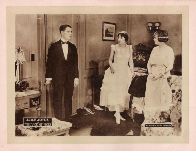The Vice of Fools (1920) Vitagraph Co. of America. Distributor: Vitagraph Co. of America; Alice Joyce Productions. Director: Edward Griffith. Assistant director, John William Evans. Scenario: C. Graham Baker. Story: Francis James. Camera: Joe Shelderfer. Cast: Alice Joyce, Ellen Cassity, Robert Gordon, Raymond Bloomer, William Tooker, Elizabeth Garison, Agnes Everett. 5 reels This film appears to be LOST