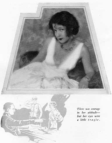 Mary Ann Wagner loosened the scarf about her throat and moved on with a slow, feline grace. Her slender eager body swung her light clothes closer about her. There was courage in her befeathered hat, a sense of defiance in her attitude but her eyes were a little tragic. Eyes that seemed to ask was she was destined to pass under one street lamp after another and on into shadows. | |