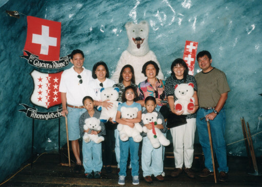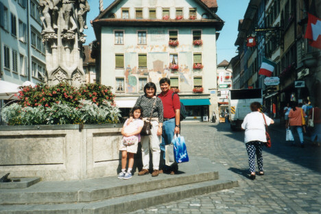Coming from Rome, we took the train once more to Zurich, Switzerland. This time we passed through Lake Como before we crossed the Swiss border. From the train, we had a splendid view of the lake! We got to Zurich in the evening and Bob's cousins met us there. The next day, they took us to Lucerne where we saw the famous Kapellbrucke (Chapel) Bridge all adorned with colorful flowers. Then we headed for Altdorf where Bob's cousins live. They live right in the heart of the Swiss Alps! Altdorf is the home of the legendary Wilhelm (William) Tell. We also drove up the narrow and winding road of the Furka Pass to get to the Rhone Glacier. Check out our photo taken inside the glacier!