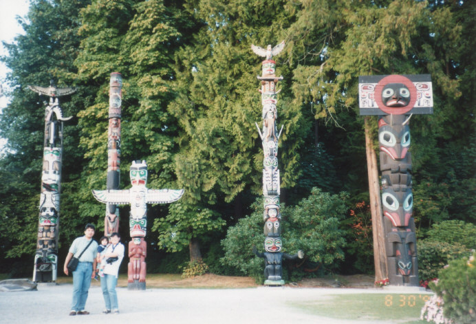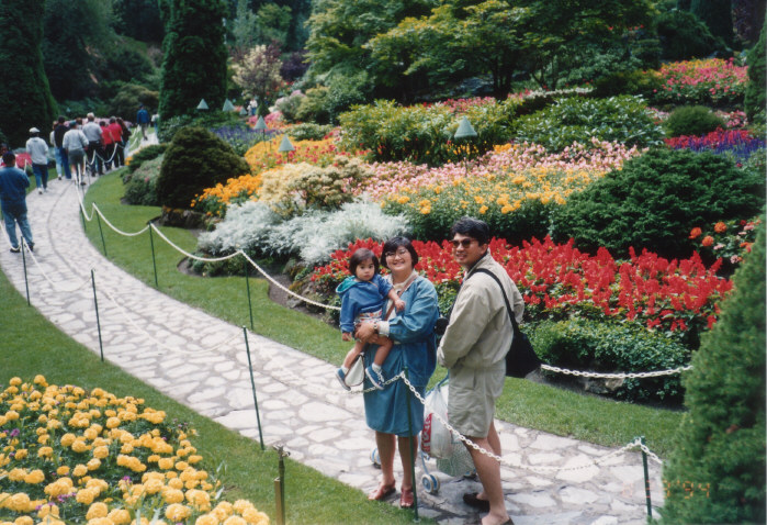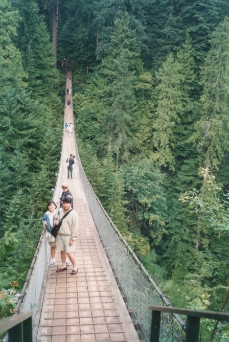 Isabelle's first trip outside the United States was in 1994. We went to Canada and visited Bob's aunt, Nang Nating. She was a wonderful guide! She lived in Vancouver, BC but she took us on the ferry boat to Victoria, where we saw the very elegant Empress Hotel (where the British monarchs stay during their visits). We also toured the Parliament, the Butchart Gardens, the Crystal Gardens, and the Royal British Columbia Museum where Isabelle saw a giant wooly mammoth! In Vancouver, we saw the totem poles at Stanley Park, and we drove a few miles to see the Capilano Suspension Bridge and the nearby salmon hatchery, Grouse Mountain, and the famous ski resort Whistler.