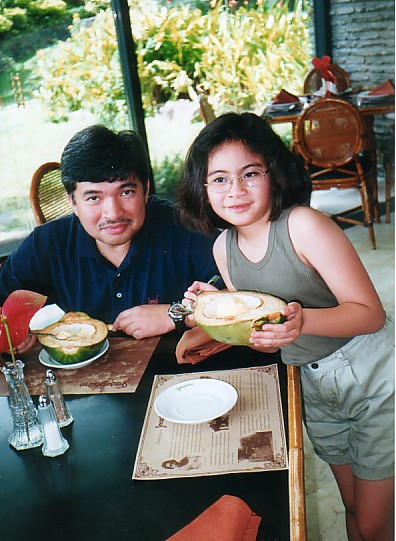 We went for a visit to Manila, Philippines in February 2000. It was good to see family once more. The weather during this time was perfect... it was still a bit cool because the summer heat hasn't quite made its way to the islands yet! For starters, we had scoops of ice-cream in fresh coconut halves to refresh us!