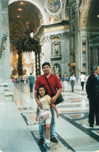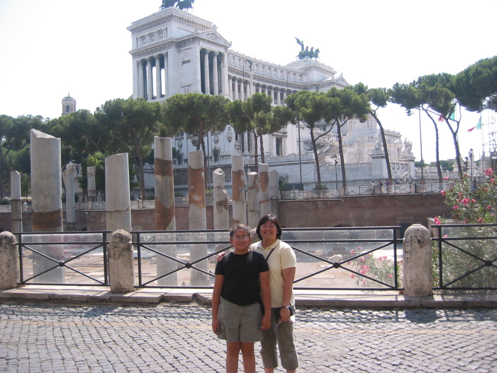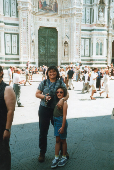 "Gladiators, we salute you!"... After three days in lovely Paris, we took the 9-hour train ride to Rome, Italy. We marveled at the sight of the Coliseum. Isabelle and I had a picture taken where behind us is the underground maze where the gladiators and animals were kept before being brought up on stage for the gladiatorial battles. We also visited the Basilica di San Pietro, the Spanish Steps, and threw coins into the Fontana di Trevi. Rumor has it that if you threw a coin into the fountain, you will someday return to Rome. (I hope so!) We took another day trip to Florence and saw the Duomo (the dome) of the Santa Maria del Fiore, as well as the famous statue of "David" by Michaelangelo.