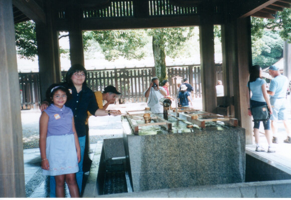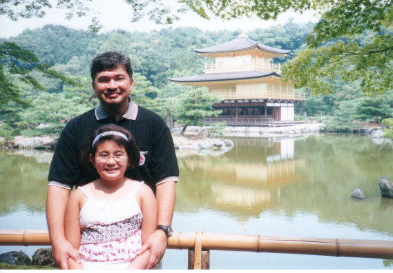 August 2001 - On the way back to California from the Philippines, we passed by Japan and stayed for five days. First stop: Tokyo... Isabelle was fascinated by the high-tech toilet in the hotel! So many buttons to push! We took the city tour and washed our hands at the entrance of the Meiji Shinto Shrine, and visited the Imperial Palace, as well as the Kaminarimon in Asakusa. Then we took the bullet train to Osaka (had a view of Mt. Fuji on the way!) where we visited historical Kyoto and saw the Nijo Castle, the Golden Pavilion and the Old Imperial Palace. The "nightingale floors" in the Nijo Castle were amazing! The wooden floors of the castle were constructed in such a way that the floor creaked and "chirped" as you walked on it. This alerted the Shogun warriors of an intruder. One memorable note: all shopping centers have a storey or two in the basement full of sweet treats, bento lunch boxes, and all kinds of delectable goodies for sale. A true feast for the eyes and mouth!