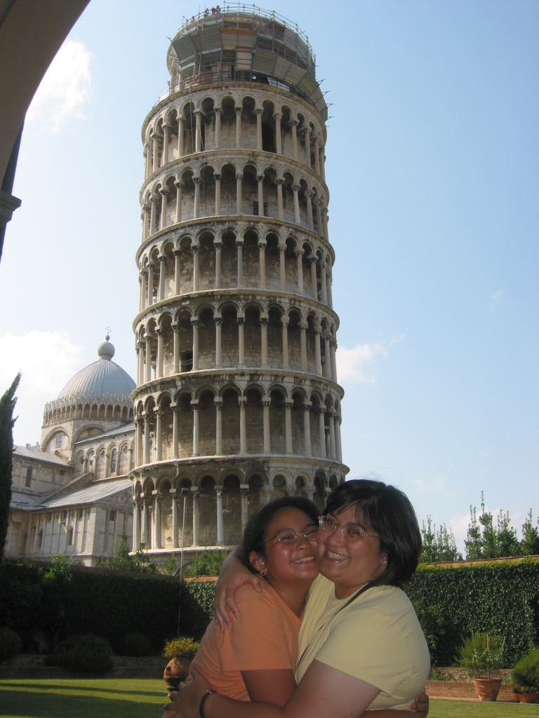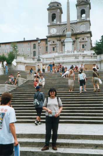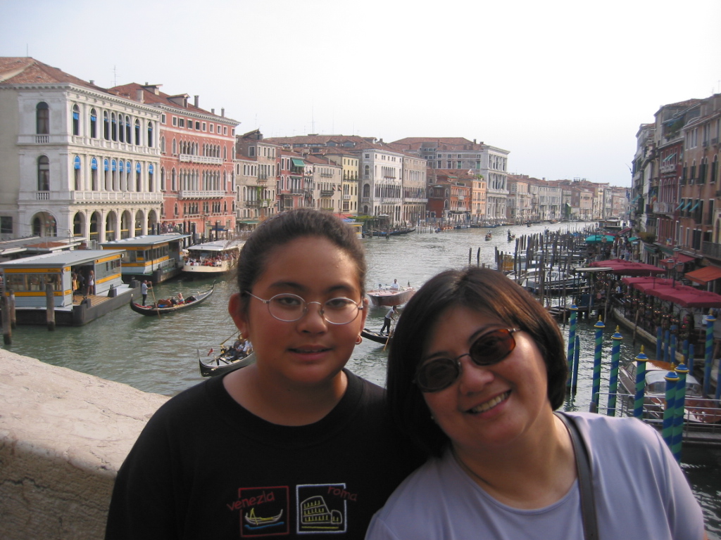 August 2003 - We made another trip to Europe to see other parts of Italy. We returned to Rome, where I dropped a few more coins in the Trevi Fountain. I did that in 1999, and the saying IS INDEED true... I did return! We headed for Pisa by train via the coast. What a lovely ride! Surprisingly, the hotel I booked in Pisa was literally walking distance to the Leaning Tower. Isabelle kept taking pictures of us with the Leaning Tower behind us standing straight. She said she was adjusting her camera angle because the tower didn't look right. I told her it was SUPPOSED to lean like that! Duh! We also enjoyed a delicious Tuscan dinner in Pisa where Isabelle had her first sip of a dessert wine called "Vin Santo" or Holy Wine. Then off we went to Venice where we walked through the canals, and fed the pigeons in St. Mark's Square. You really need a map to find your way around the streets of Venice. Very confusing! We stayed in Treviso, a little town not far from Venice, and was lucky enough to witness a street parade with the locals in colorful costumes. Then we headed back to Rome to prepare for our next destination.... Spain!