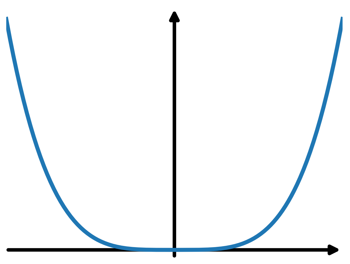 An interesting question here: what if \(\|\nabla^2 f(x^\star)\| = 0\)? Is it possible? Consider \(f(x) = \tfrac{1}{4}x^4\) with \(x^\star = 0\). Then \(\nabla^2 f(x) = 3x^2\) and \(\|\nabla^2 f(x^\star)\| = 0\). Graphically, this function is flat around its optimum (Figure 2).