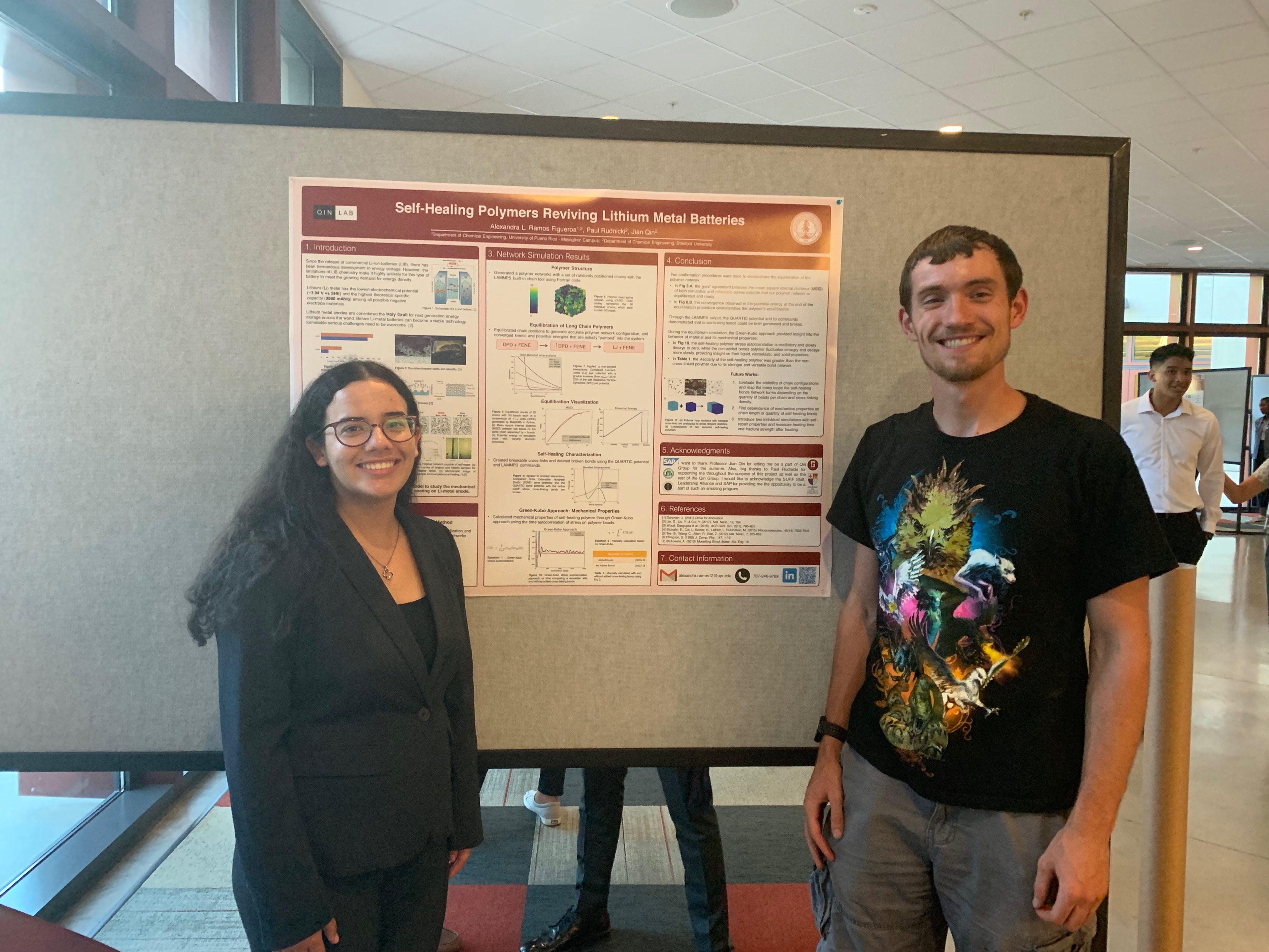 Our summer REU students Grason and Kian presente posters based on the simulationn work they did in the lab! It was wonderful to have you both, and it was a terrific show! Thanks the great mentorship provided by Theo and Jacob.