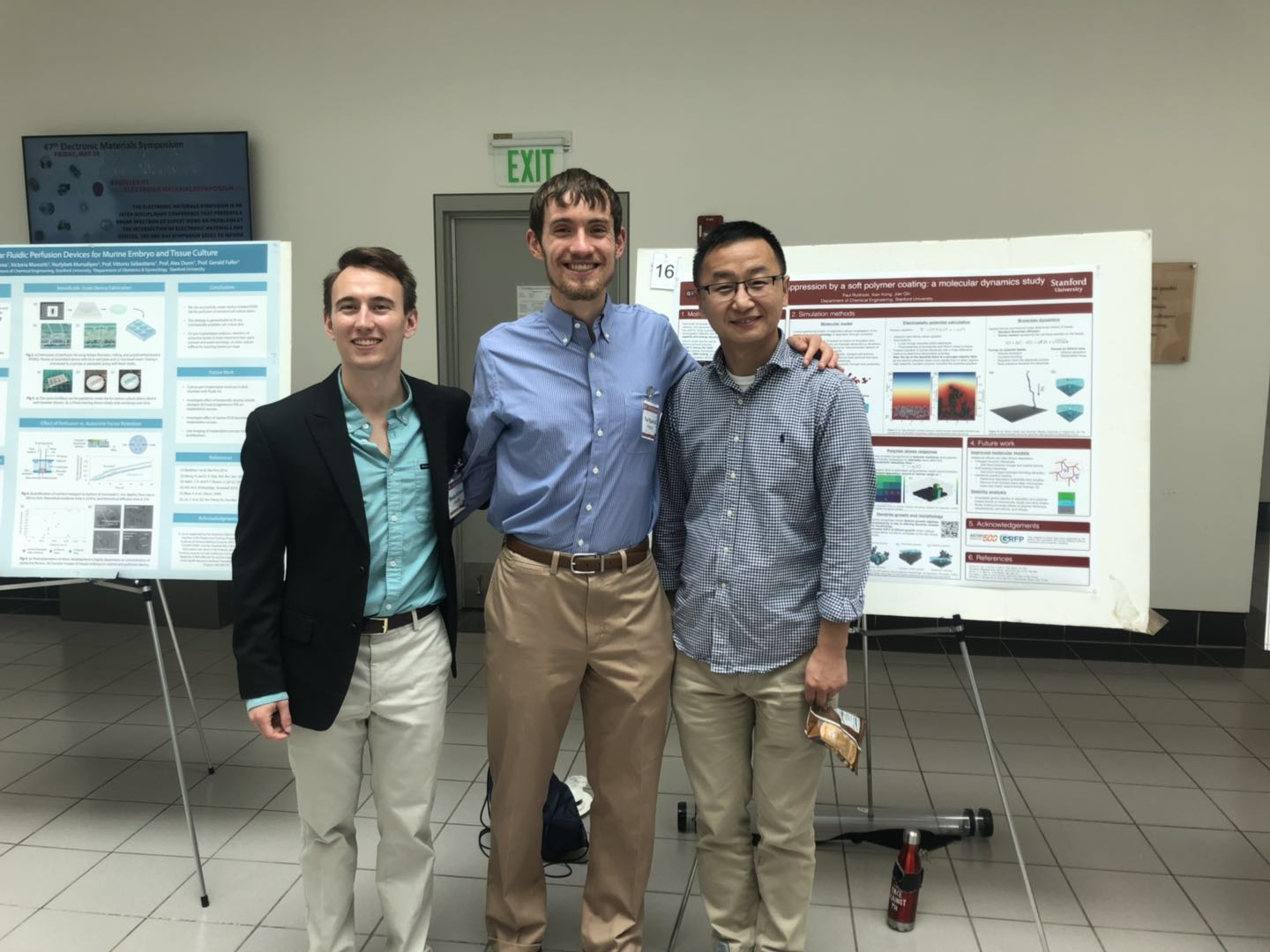 Wes, Huada, and Xian attended the APS march meeting presenting their researches in Boston. Wes talked about the force field parameterization of PEDOT:PSS. Huada talked about the dielectric virial expansion for nano-particle composite. Xian talked about coarse-grained modeling of lithium dendrite growth near lithium anode, which he was working on with Paul. Jian attended too, and presented Sean's research on complexation of homologous polyions.