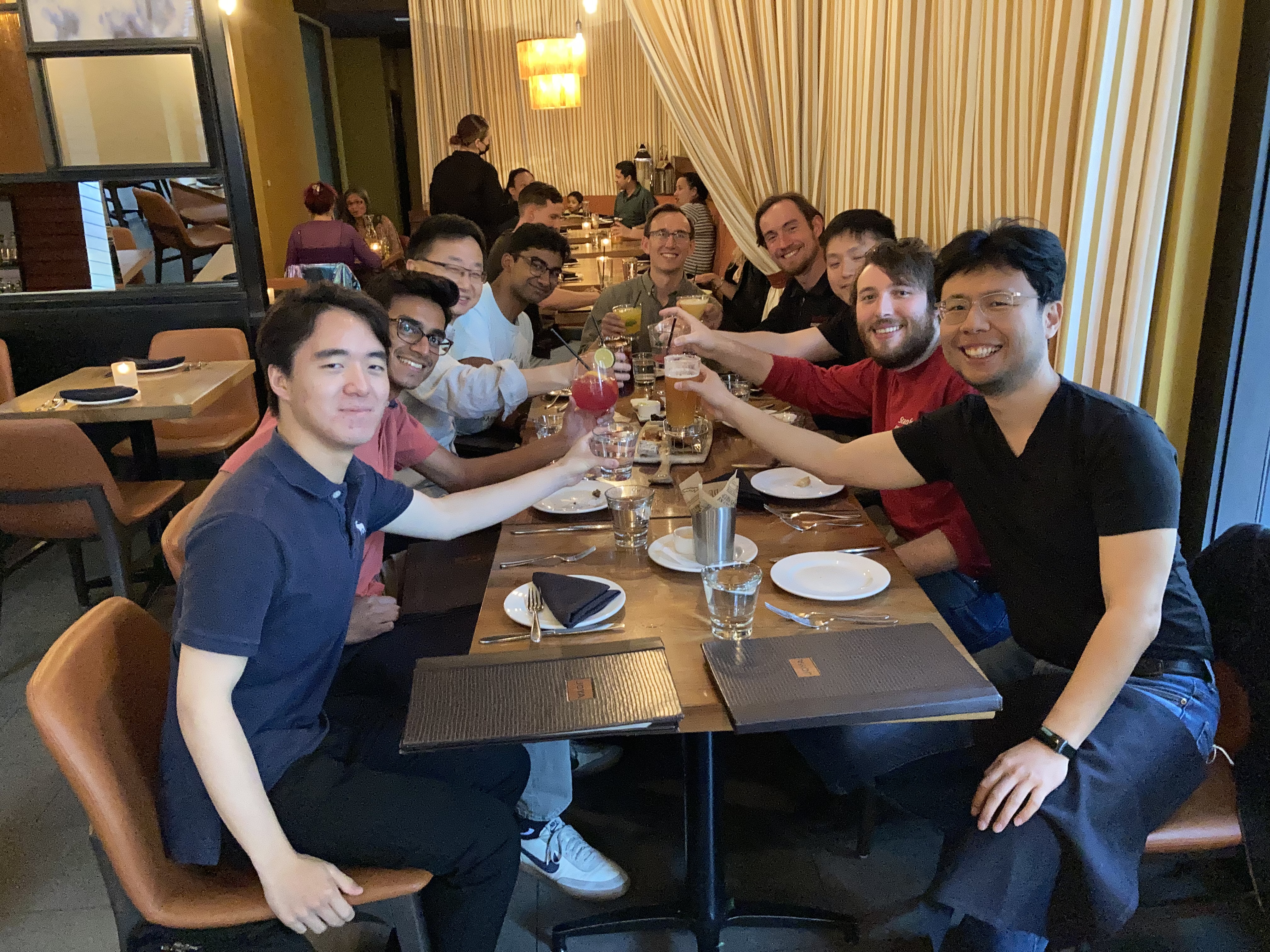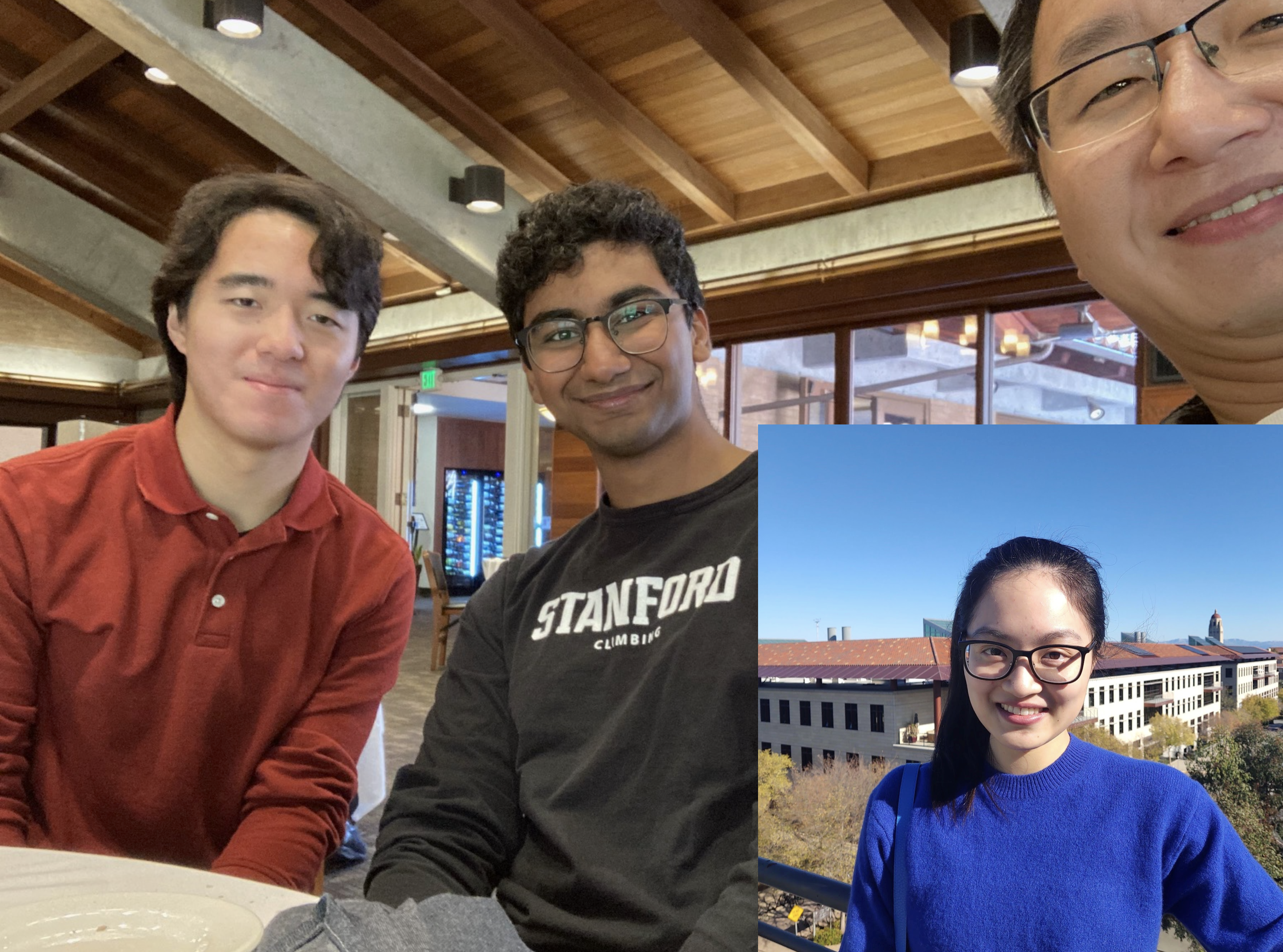 The first group dinner at Joya in 2023 on January 13! The undergraduates (Doug, Sathya, Xiaomian) joined Jian in faculty club on January 17. Due to the poor planning of Jian, pictures were not taken earlier. So Xiaomian was "inserted".