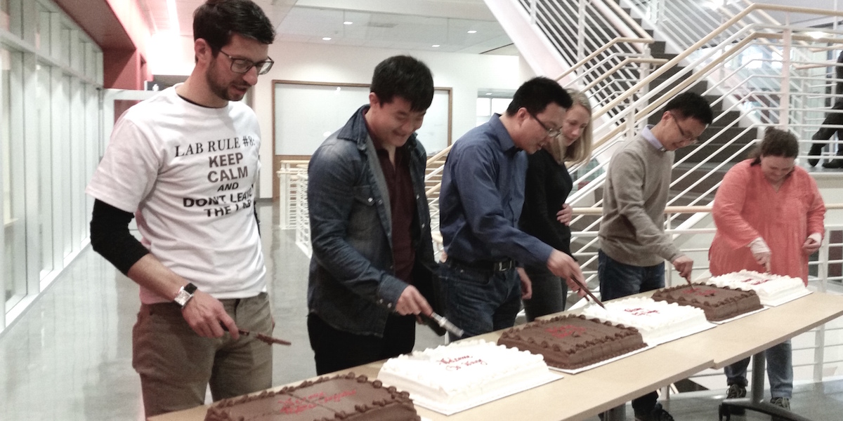 The lab throw a party for our dear postdoc Kuan-Yu Lin. Kuan-Yu has been with us for two years, and will soon move on to start his own research lab! Kuan-Yu, it was fantastic to have you, and you will be dearly missed. Thank you for everything you have brought to us.