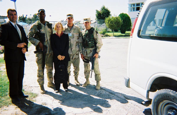 U.S Treasury Afghanistan desk officer Anna Corfeld in Kabul with security.