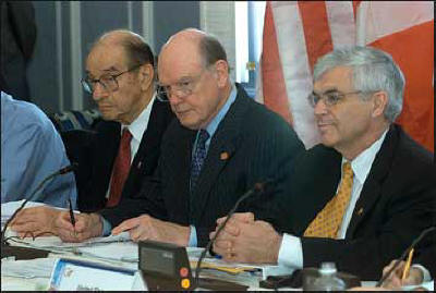 At G7 meeting in Constitution Hall, Washington, April 15, 2005 with Alan Greenspan and John Snow |