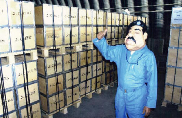New Iraqi Dinars in Baghdad airport after offloading from 747, guarded by Saddam