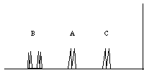 3.* (1996 F 3) Adenosine triphosphate, "ATP," is often called the energy currency of aerobic organisms. Oxidative phosphorylation results in energy stored by ATP; hydrolysis of ATP to ADP and phosphate releases energy. Below is a structural formula of ATP. Sketch the 31P NMR spectrum you might expect to be manifest by ATP; note that 31P (100% natural abundance) has nuclear spin 1/2. Do not ignore spin-coupling.
