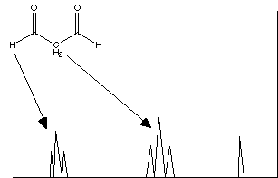 malonaldehyde (propanedial) F. Sketch the expected proton NMR spectrum for malonaldehyde; include relative chemical shifts from tetramethylsilane (show its signal) and indicate the spin coupling pattern. Assign the peaks to each type of protons.