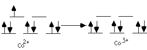 4.* (1995 F 10) Cytochrome-c is a monohemeprotein with two axial ligands bound to iron: a thioether from methionine and an imidazole from histidine. During its function, this iron center cycles between two oxidation states--Fe(II) and Fe(III). The function of this monohemeprotein is not inhibited either by CO nor by cyanide anion. A. Would cytochrome-c be a useful oxygen carrier? Explain your answer. No. The monohemeprotein, because it already has two axial ligands, has no vacant coordination sites to bind O2. B. What is the function of cytochrome-c? It's an electron carrier. C. Cobalt substituted cytochrome-c (Co substituted for Fe) is not known in nature; however, when a synthetic sample of cobalt substituted cytochrome-c was studied, it was found that the rate of electron transfer between the Co(II/III) states is much slower compared with the iron derivative. Explain the rate difference.