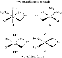 11.* (1995 2 2) A. Draw all possible stereoisomers of [CoCl2(en)(NH3)2]+. Which are chiral? (en = H2NCH2CH2NH2)